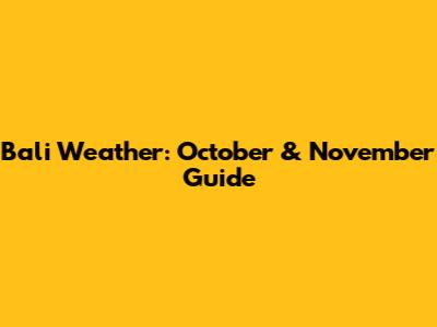Bali Weather: October & November Guide