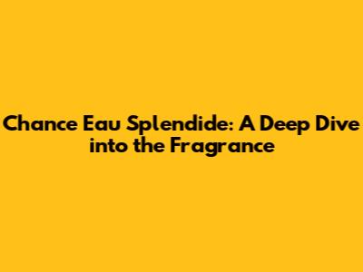 Chance Eau Splendide: A Deep Dive Into The Fragrance