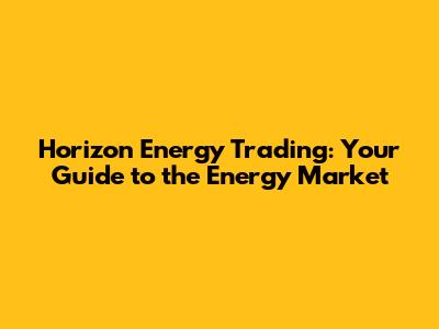 Horizon Energy Trading: Your Guide To The Energy Market