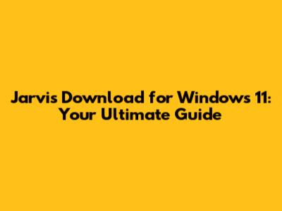 Jarvis Download For Windows 11: Your Ultimate Guide