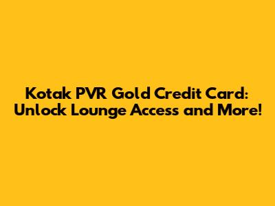 Hey guys! Are you looking to elevate your movie-going experience and enjoy some sweet perks along the way? If so, the Kotak PVR Gold Credit Card might just be your ticket to a more luxurious and rewarding lifestyle. In this article, we're diving deep into one of the most sought-after benefits of this card: lounge access. We'll break down everything you need to know, from eligibility to how to actually snag that coveted entry into airport lounges. So, grab your popcorn (or maybe save it for the lounge!), and let's get started!