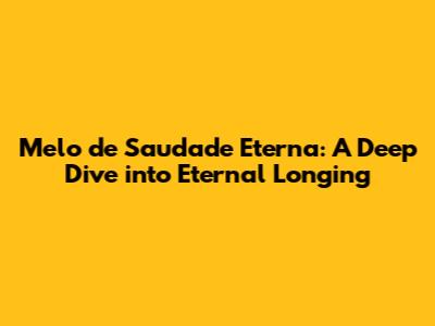 Melo De Saudade Eterna: A Deep Dive Into Eternal Longing