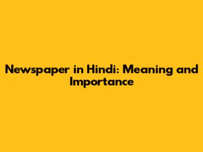 Newspaper In Hindi: Meaning And Importance