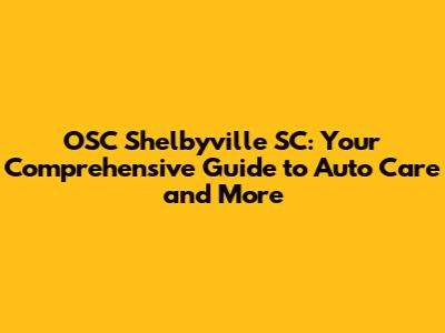 OSC Shelbyville SC: Your Guide To Auto Care And More