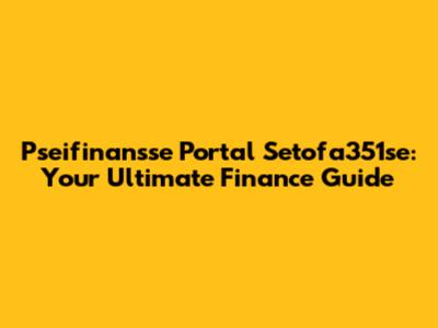 Welcome, guys, to the ultimate guide on navigating the Pseifinansse Portal Setofa351se! If you've ever felt lost in the maze of financial jargon, confusing investment options, and the ever-elusive dream of financial freedom, you're in the right place. We're breaking down everything you need to know about this unique platform, from its core features to how it can help you achieve your financial goals. So, buckle up and let’s dive in!