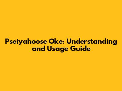 Pseiyahoose Oke: Understanding And Usage Guide