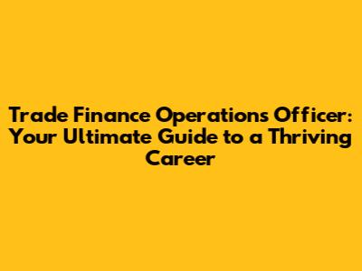 Trade Finance Operations Officer: Your Career Guide