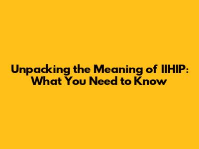 Unveiling the Core IIHIP Meaning