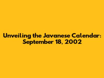 Hey guys! Ever wondered about the rich tapestry of Javanese culture, especially when it comes to timekeeping? Well, buckle up, because we're about to dive deep into the fascinating world of the Javanese calendar, specifically focusing on what September 18, 2002, held within its intricate system. This isn't just about dates and numbers; it's a window into a culture steeped in tradition, spirituality, and a unique way of understanding the cosmos. Let's unpack the secrets of Tanggalan Jawa and see what makes it so special. We'll explore the significance of the day within the Javanese calendar, its implications, and how it differs from the Gregorian calendar we're all familiar with. So, grab a cup of coffee (or teh hangat, if you're feeling authentic!), and let's get started!
