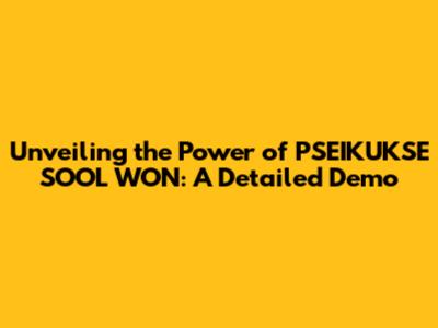 The PSEIKUKSE SOOL WON Demonstration: A Step-by-Step Guide